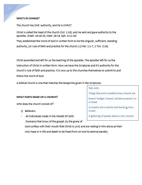 We will explain what a Biblical Church is, what the history of churches has been, how that instructs us, and what a should now do.