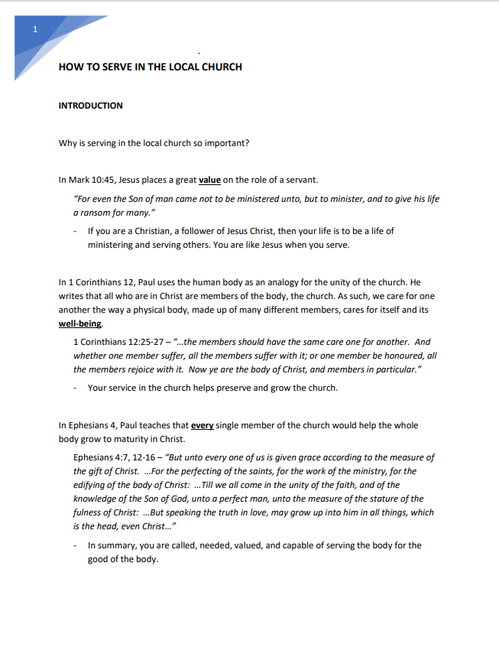 Church Membership survey course